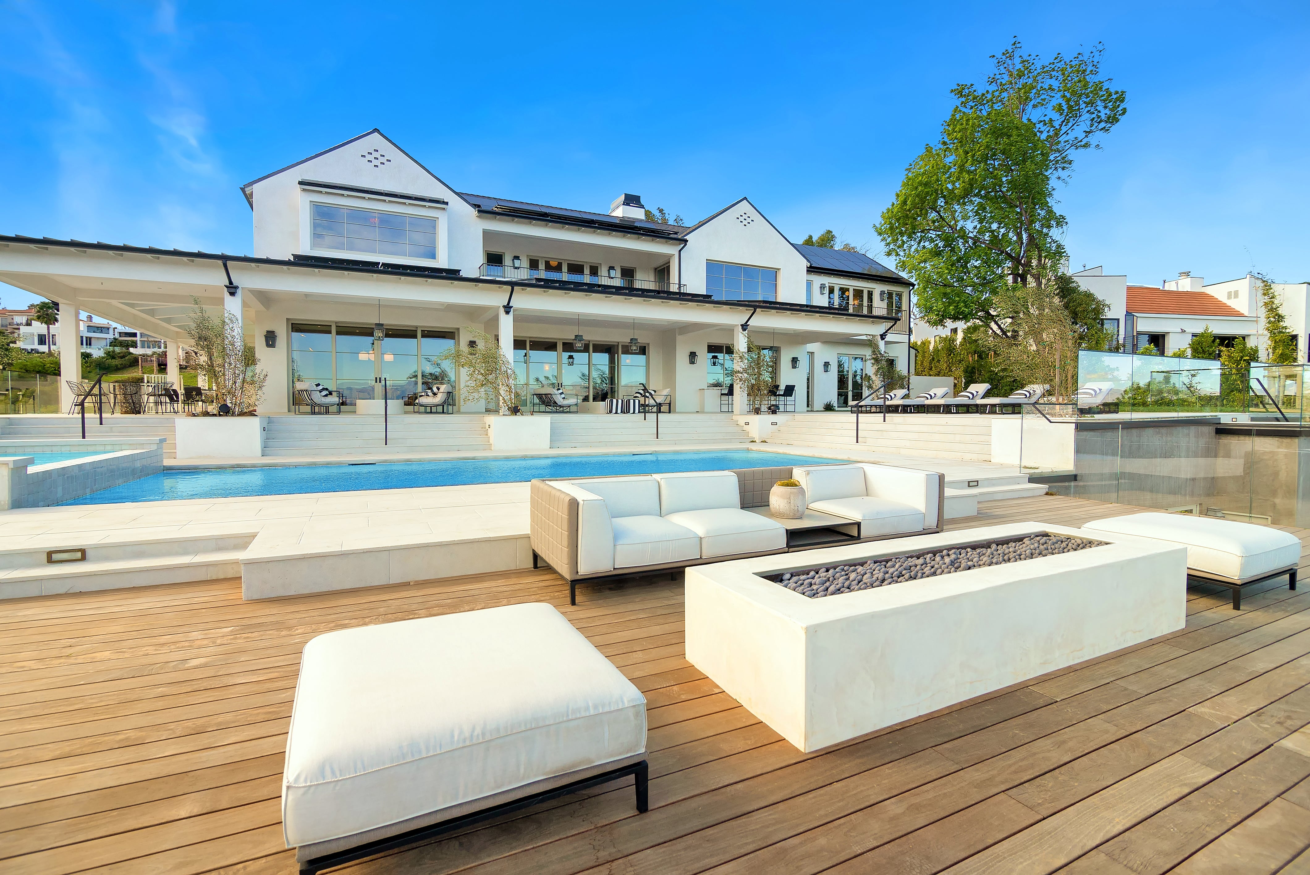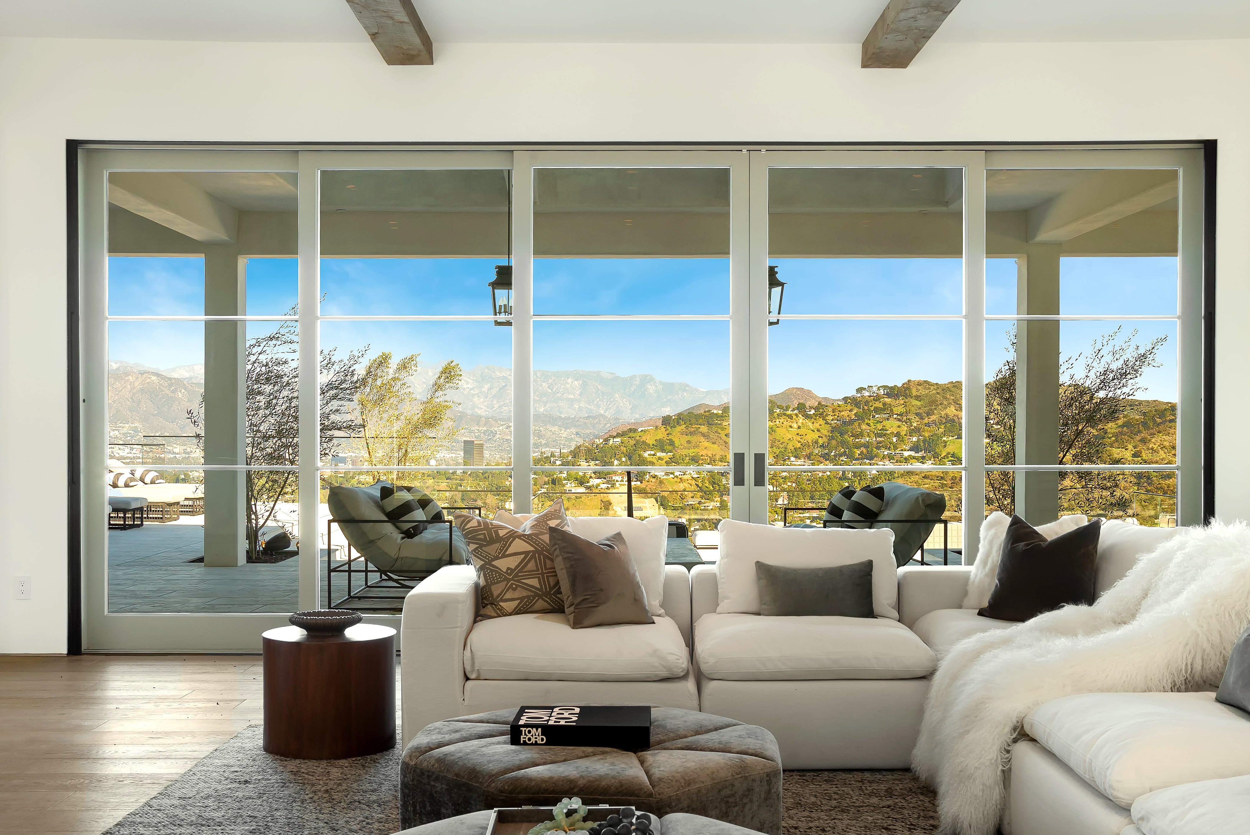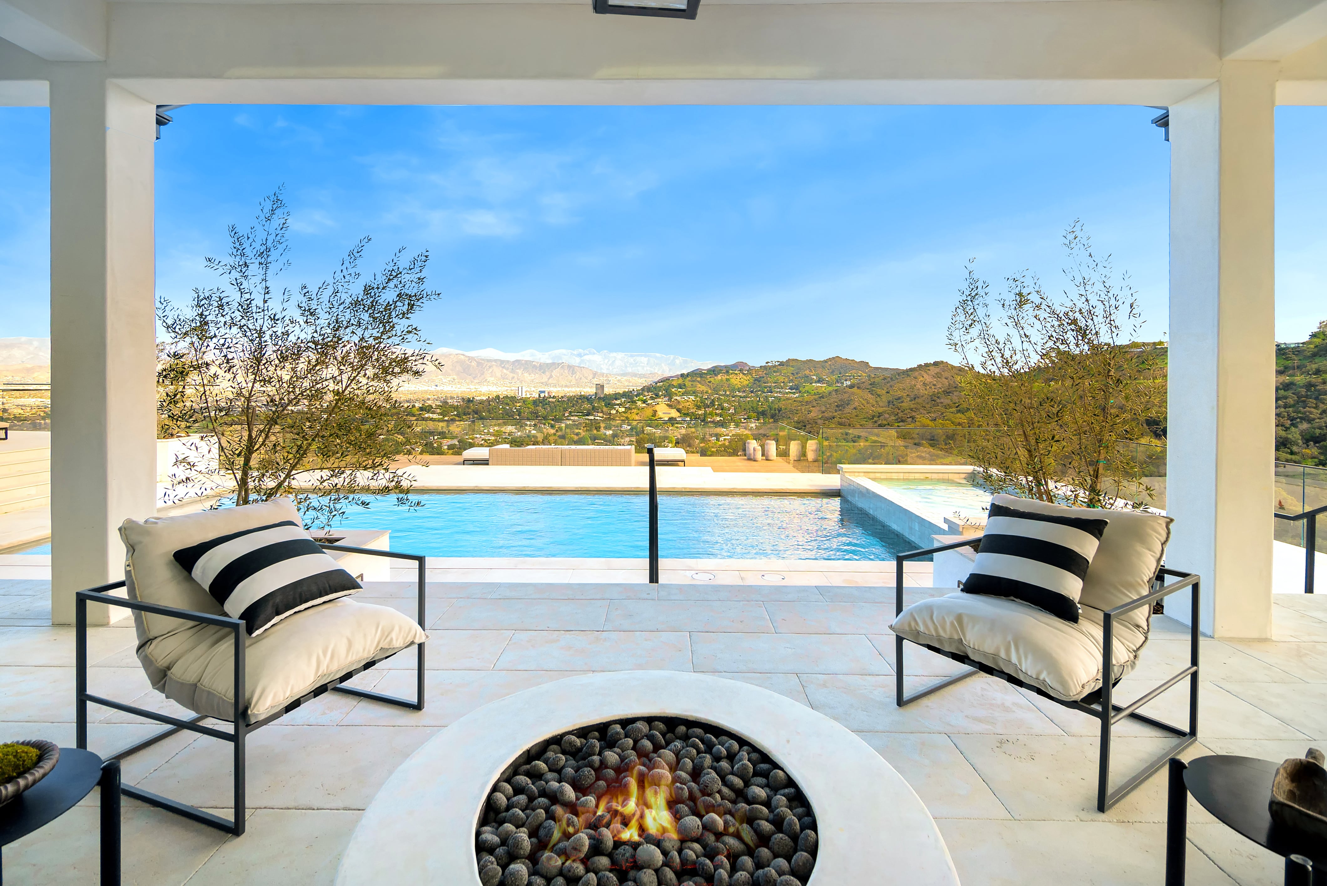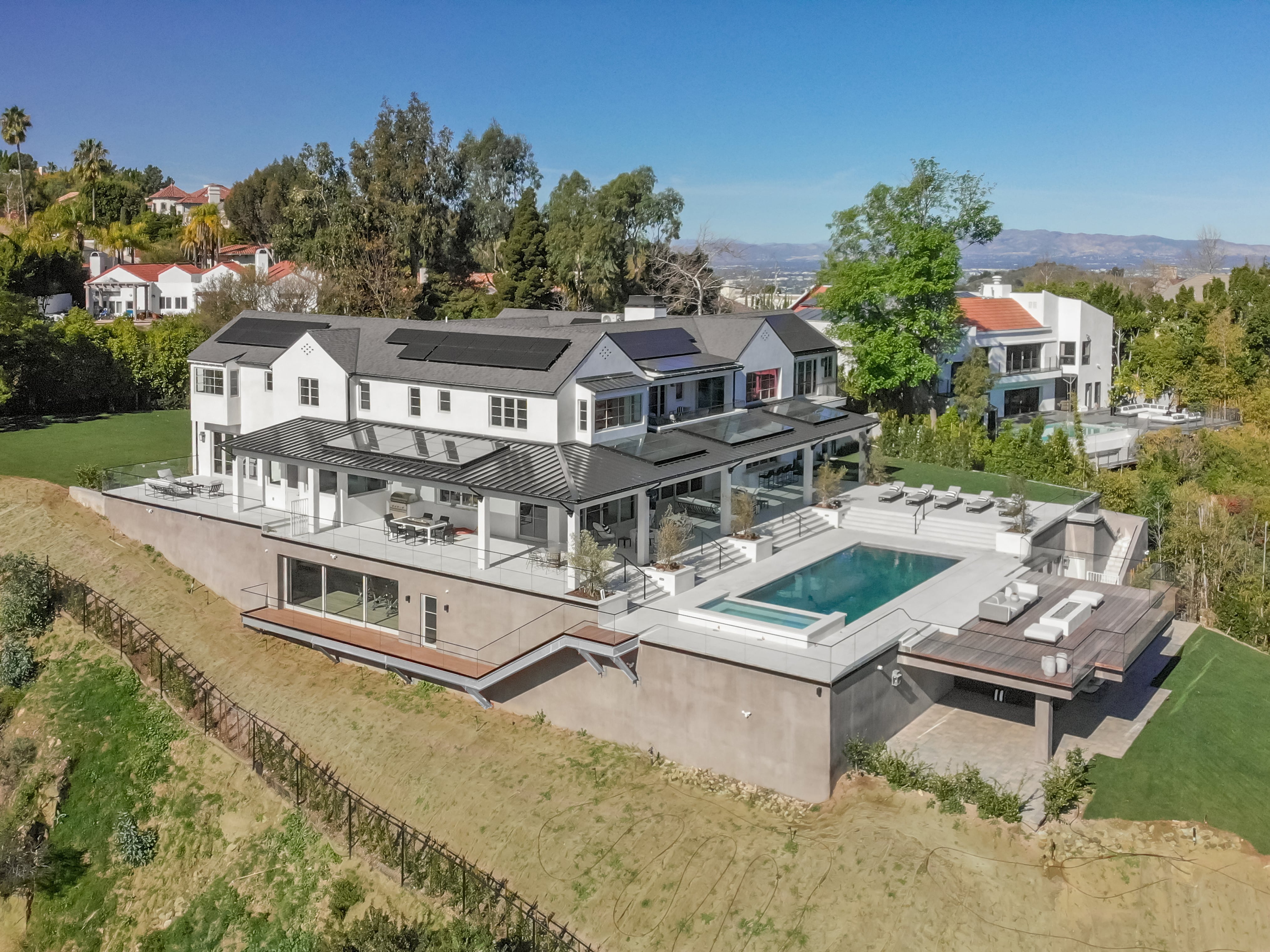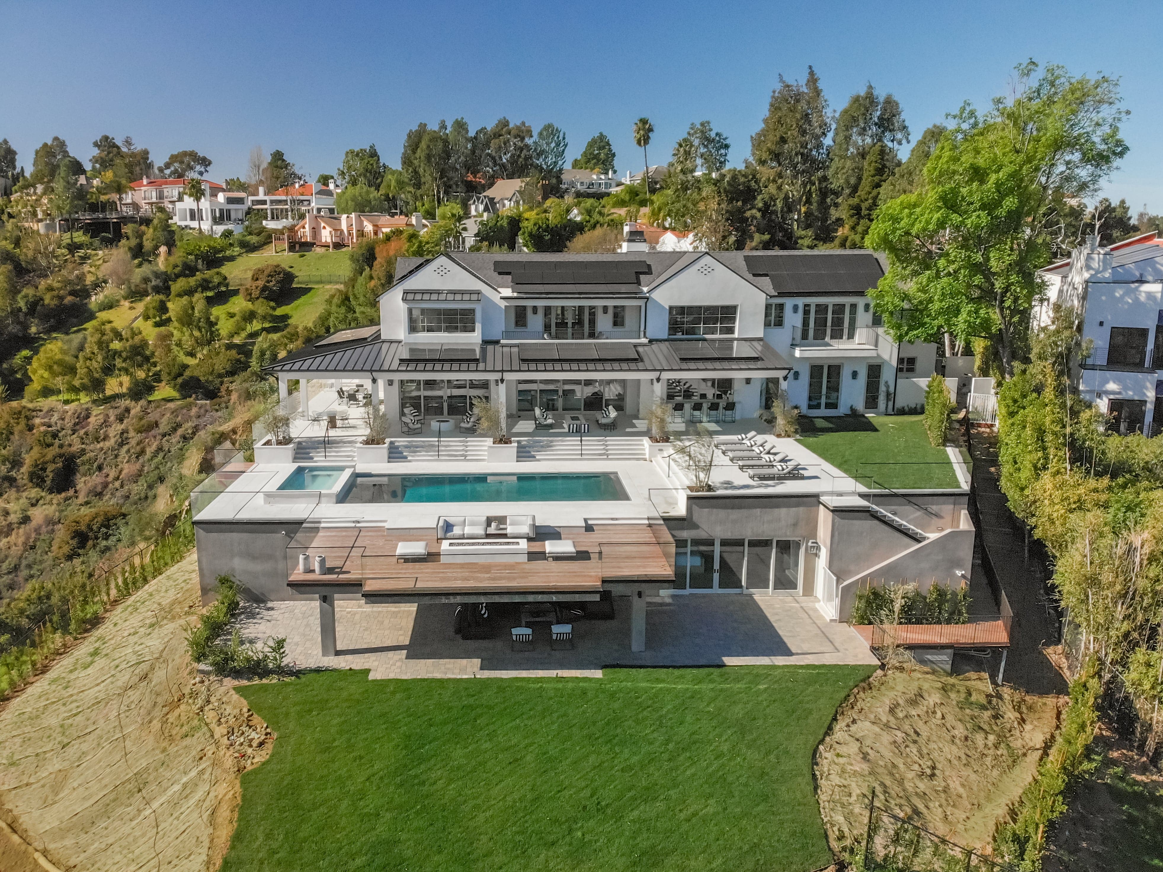 Resort living at its finest with this ground-up 12,000 square foot custom home nestled into a hillside off Mulholland. Each feature of this retreat was thoughtfully designed using a combination of local reclaimed materials and globally sourced high-end finishes.